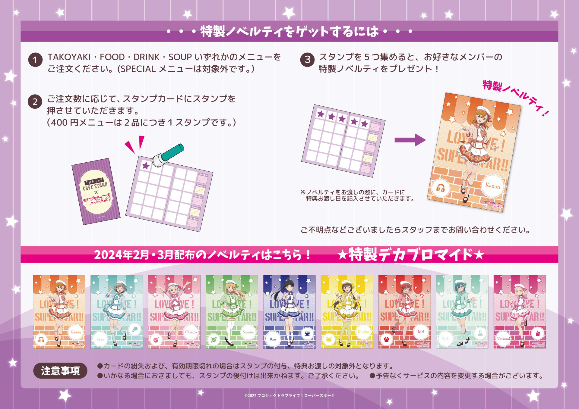 『THEキャラCAFÉ STAND×ラブライブ!スーパースター!!』にて、2024年2月・2024年3月のスタンプカード特典をご紹介★