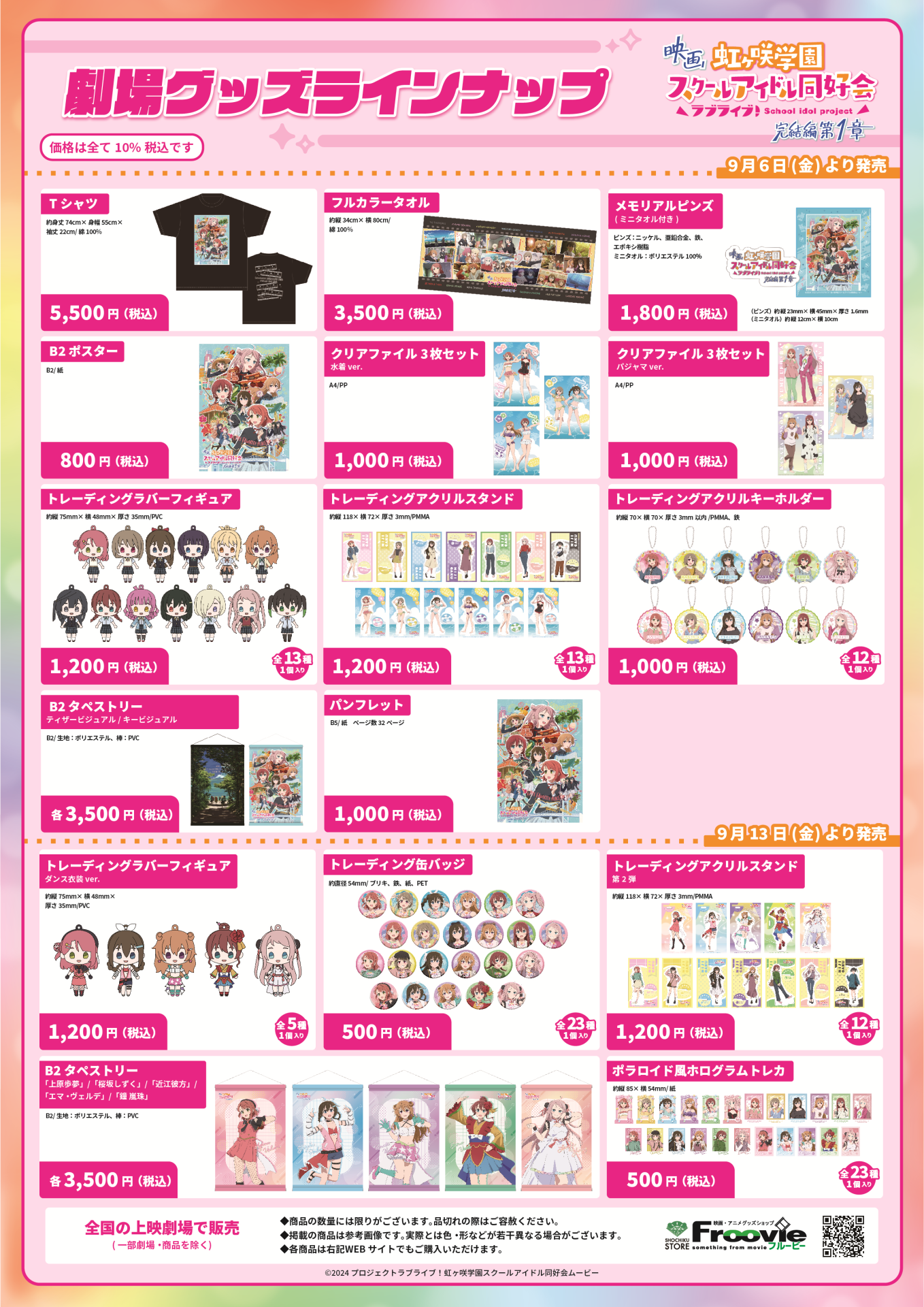 映画『ラブライブ!虹ヶ咲学園スクールアイドル同好会 完結編 第1章』の、劇場グッズ第2弾デザインが解禁されました!劇場グッズ第2弾は9月13日(金)より全国の上映劇場(一部除く)、通販サイト松竹ストア内Froovieで販売いたします。