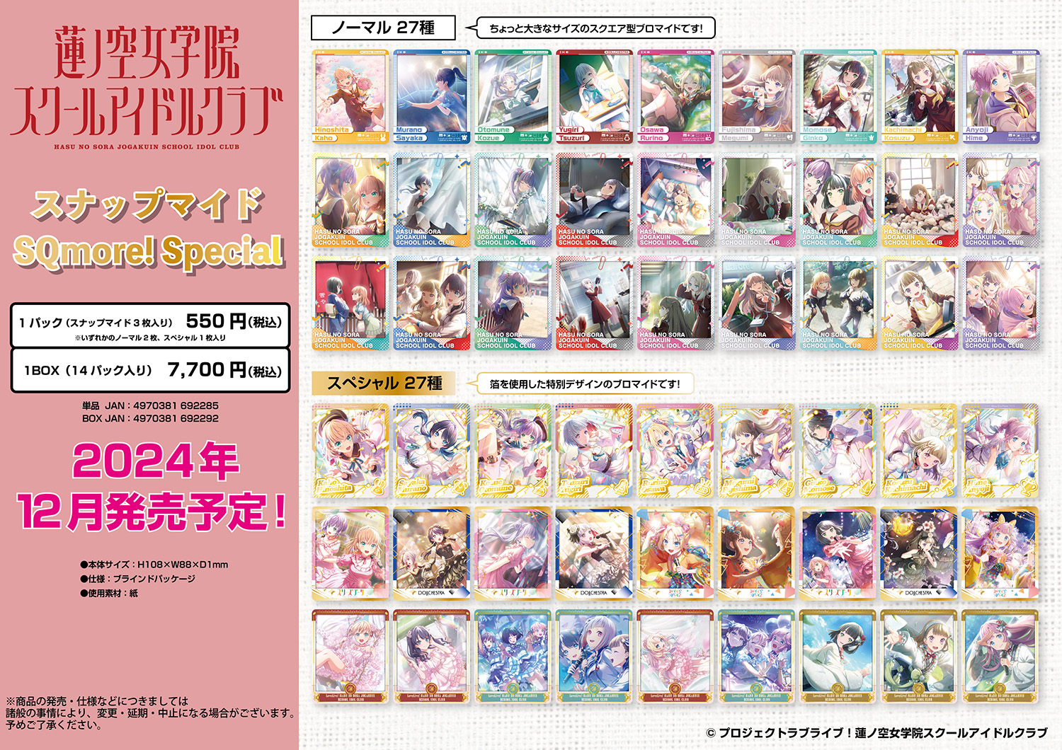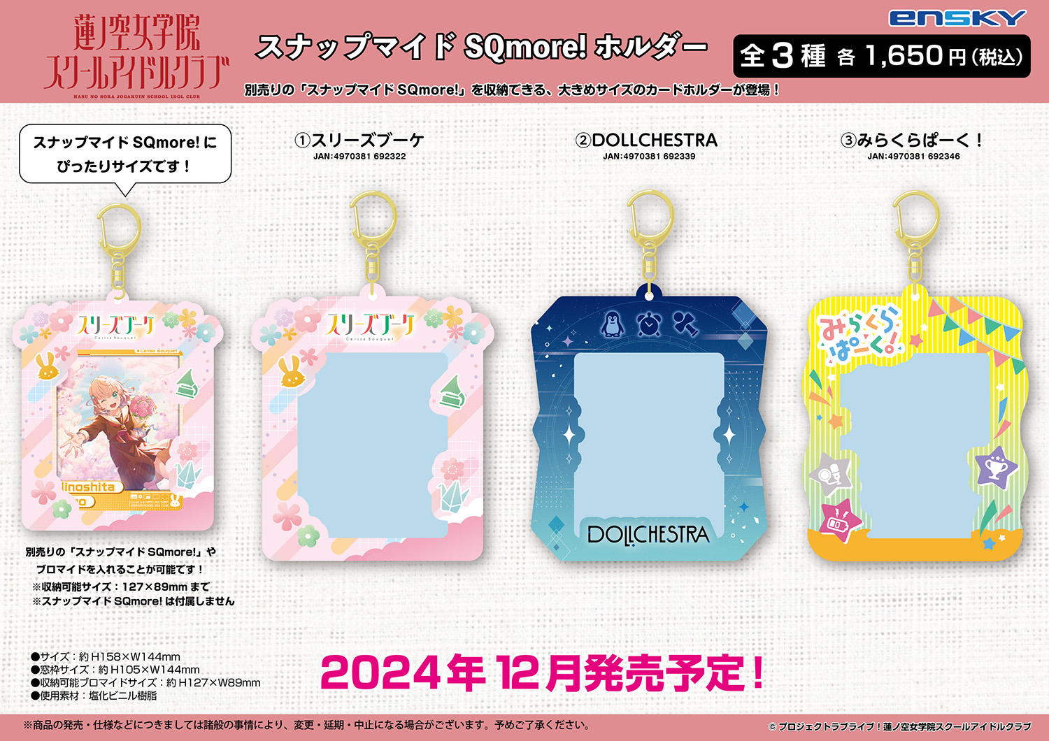ラブライブ!蓮ノ空女学院スクールアイドルクラブより、「ホイルまるかくカンバッジ」「スナップマイドSQmore! Special」「スナップマイドSQmore!ホルダー」が新登場です!