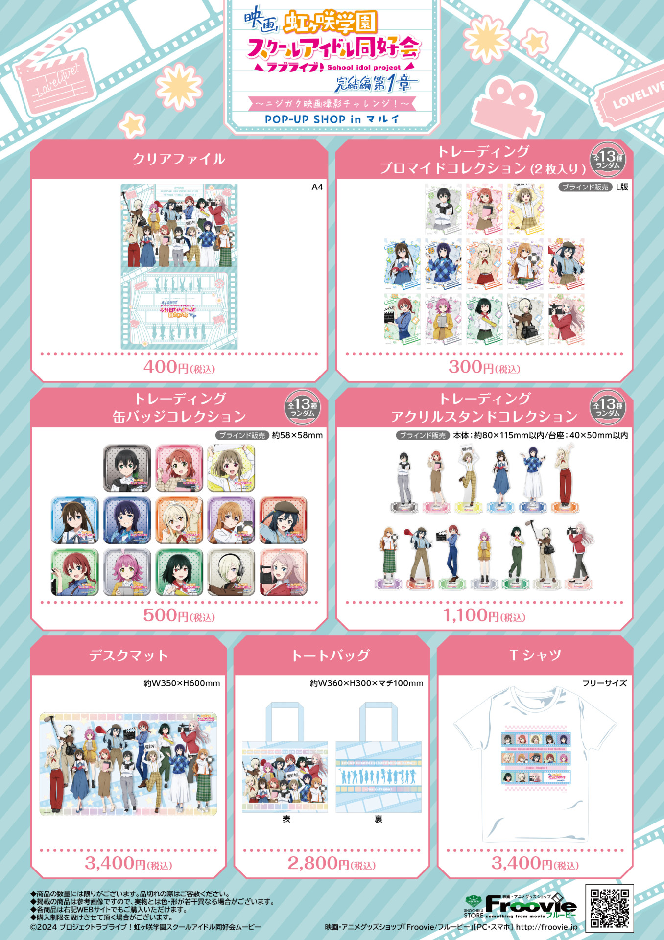 映画撮影に挑戦するニジガクメンバーたちの、本催事限定描き下ろしイラストを使用したグッズが盛り沢山です。