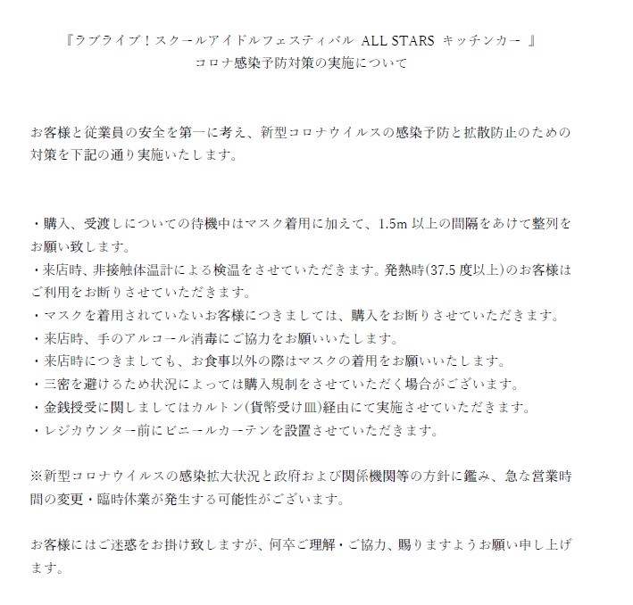 「ラブライブ!スクールアイドルフェスティバル ALL STARS キッチンカー at ODAIBAデックス東京ビーチ」より特別メニュー発売のお知らせ