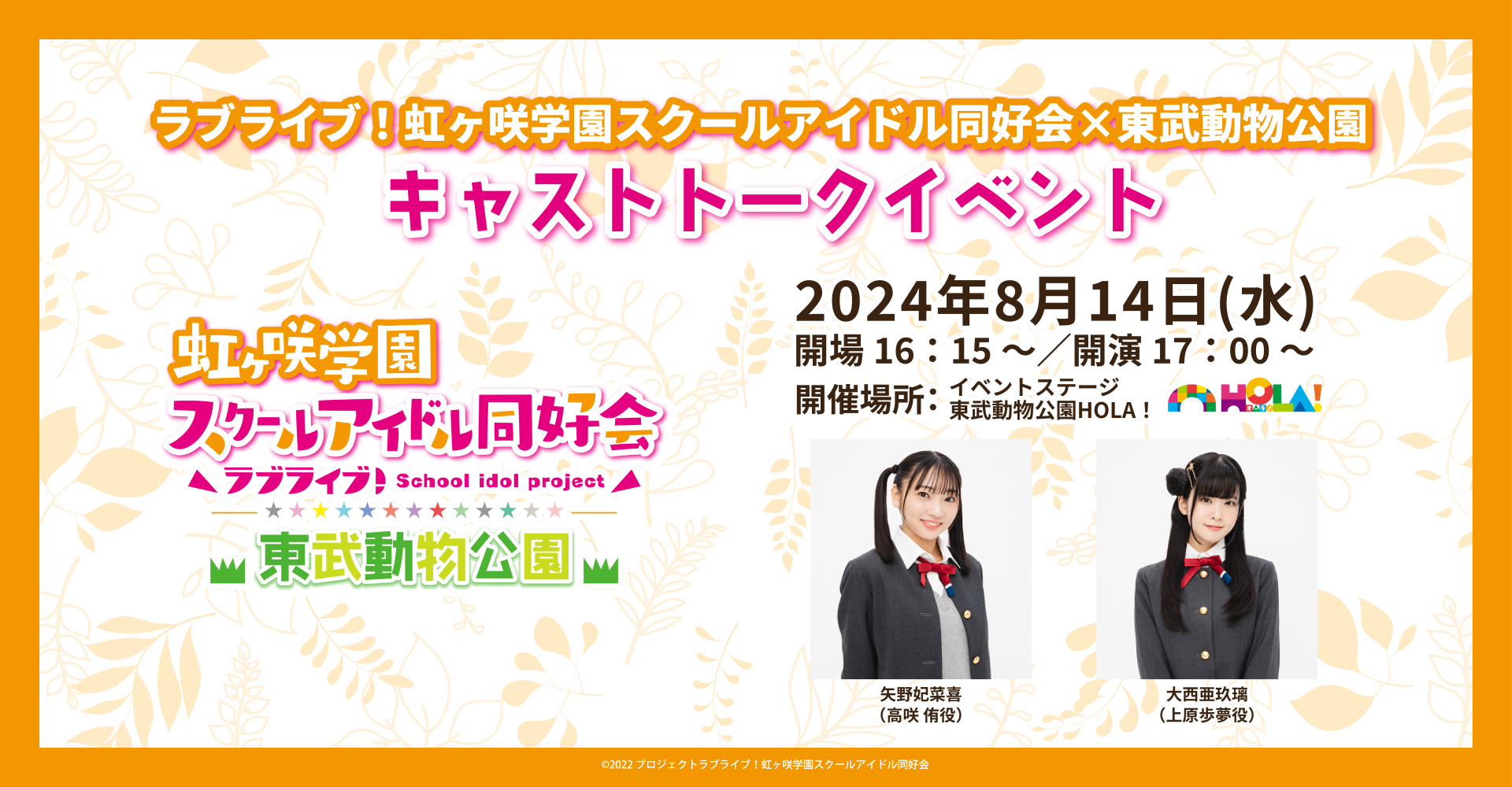 「ラブライブ!虹ヶ咲学園スクールアイドル同好会×東武動物公園」キャストトークイベントの情報を解禁!