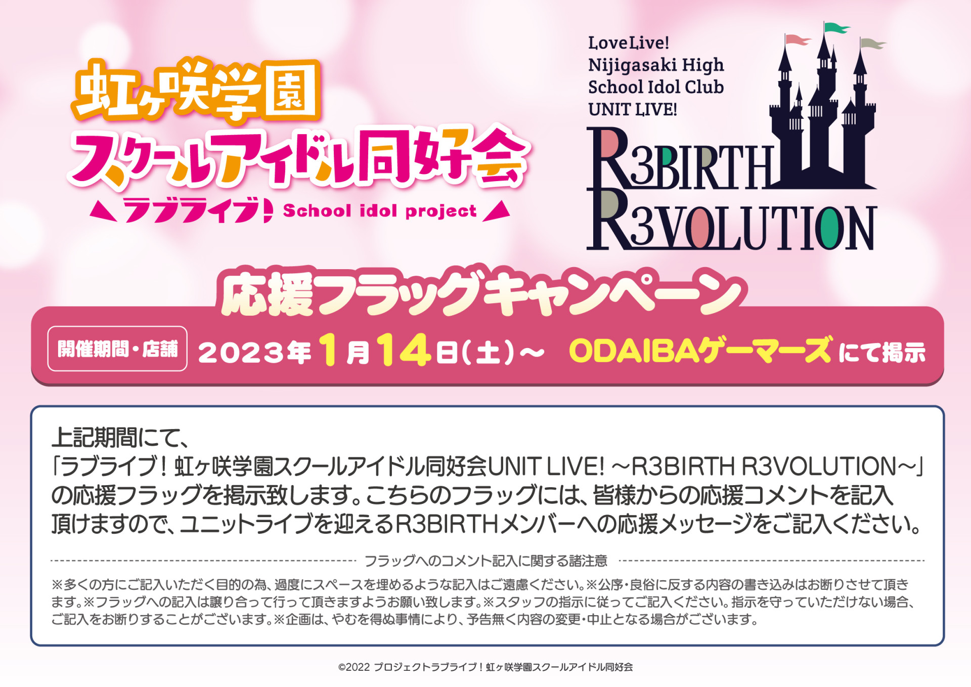 「ラブライブ!虹ヶ咲学園スクールアイドル同好会UNIT LIVE! ~R3BIRTH R3VOLUTION~」応援フラッグキャンペーンのお知らせ