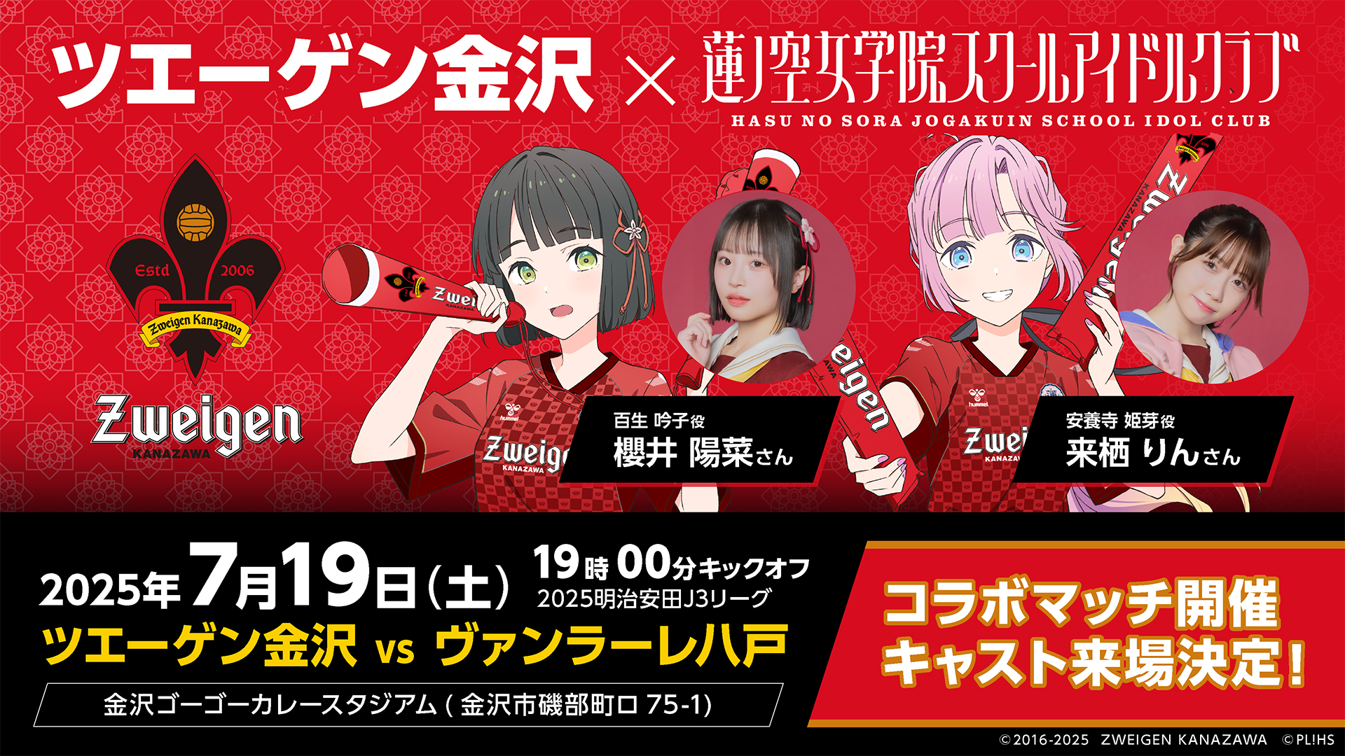 ツエーゲン金沢×ラブライブ!蓮ノ空女学院スクールアイドルクラブ コラボマッチ開催のお知らせ